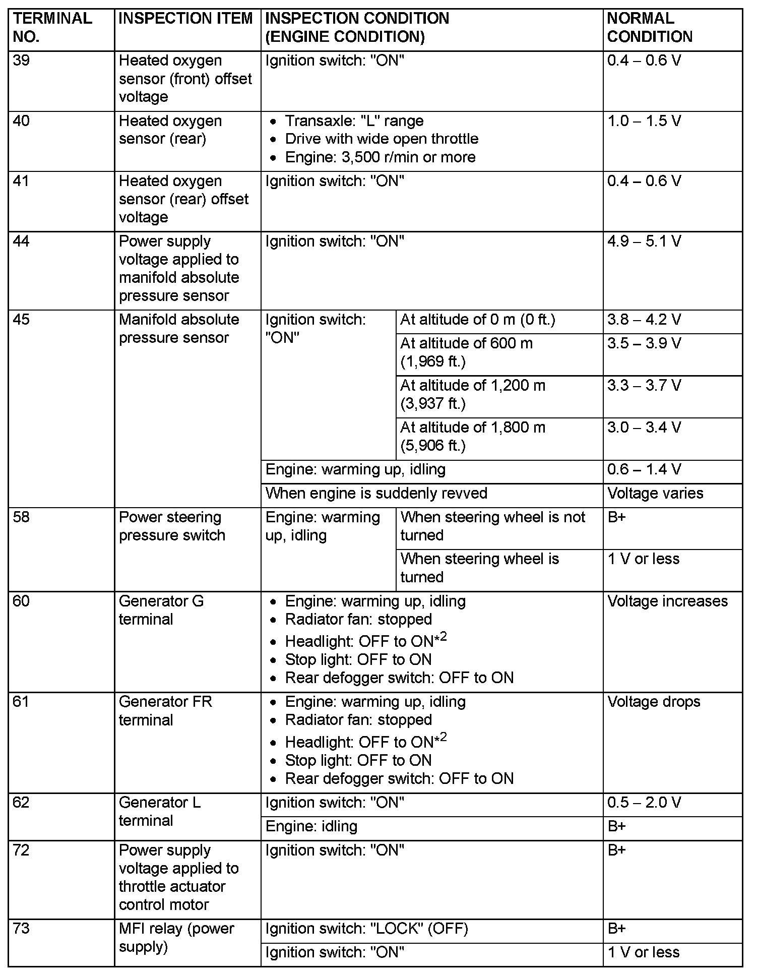 - *2: Vehicles for Canada, the headlight, taillight, etc. remain lit even when the lighting switch is in "OFF" position but is no problem for checks.