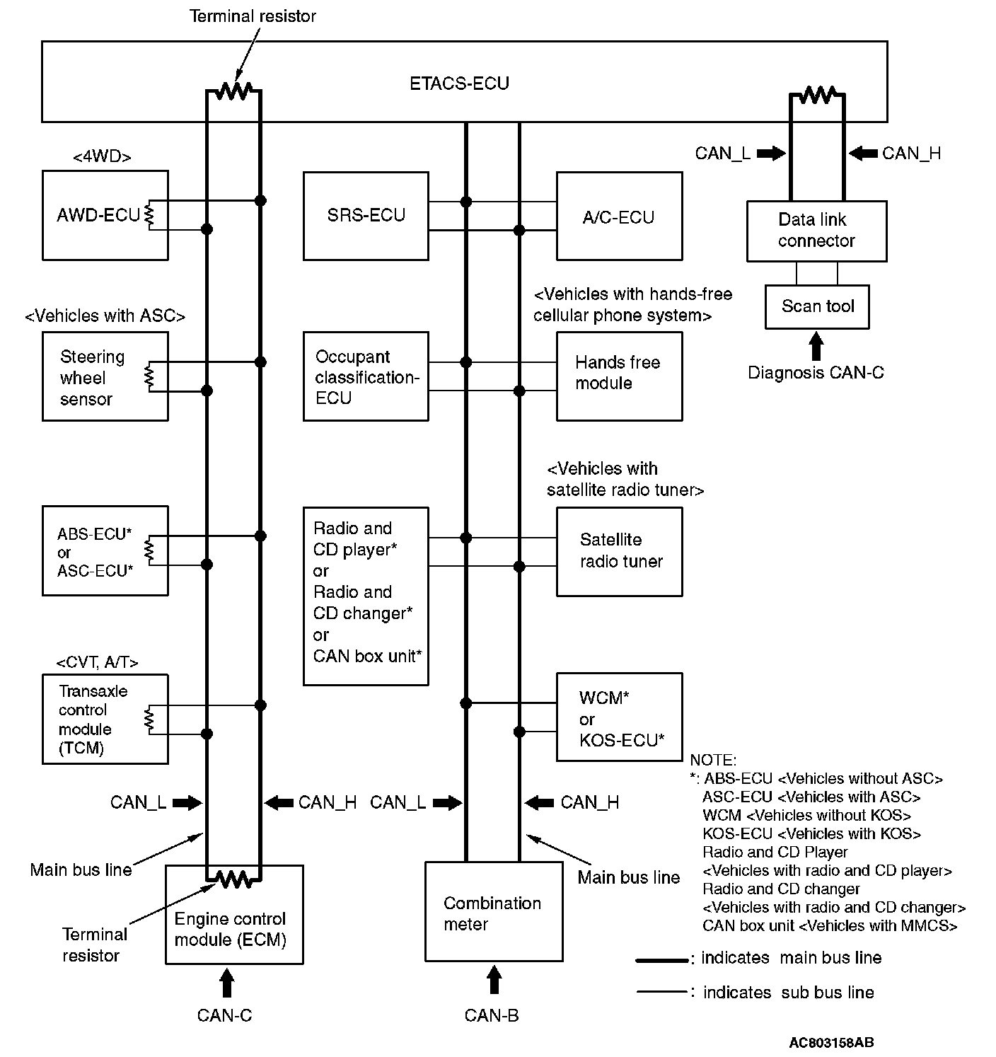 - Non-dominant ECU: ECU and sensor on CAN-C network, excluding ETACS-ECU and engine control module
