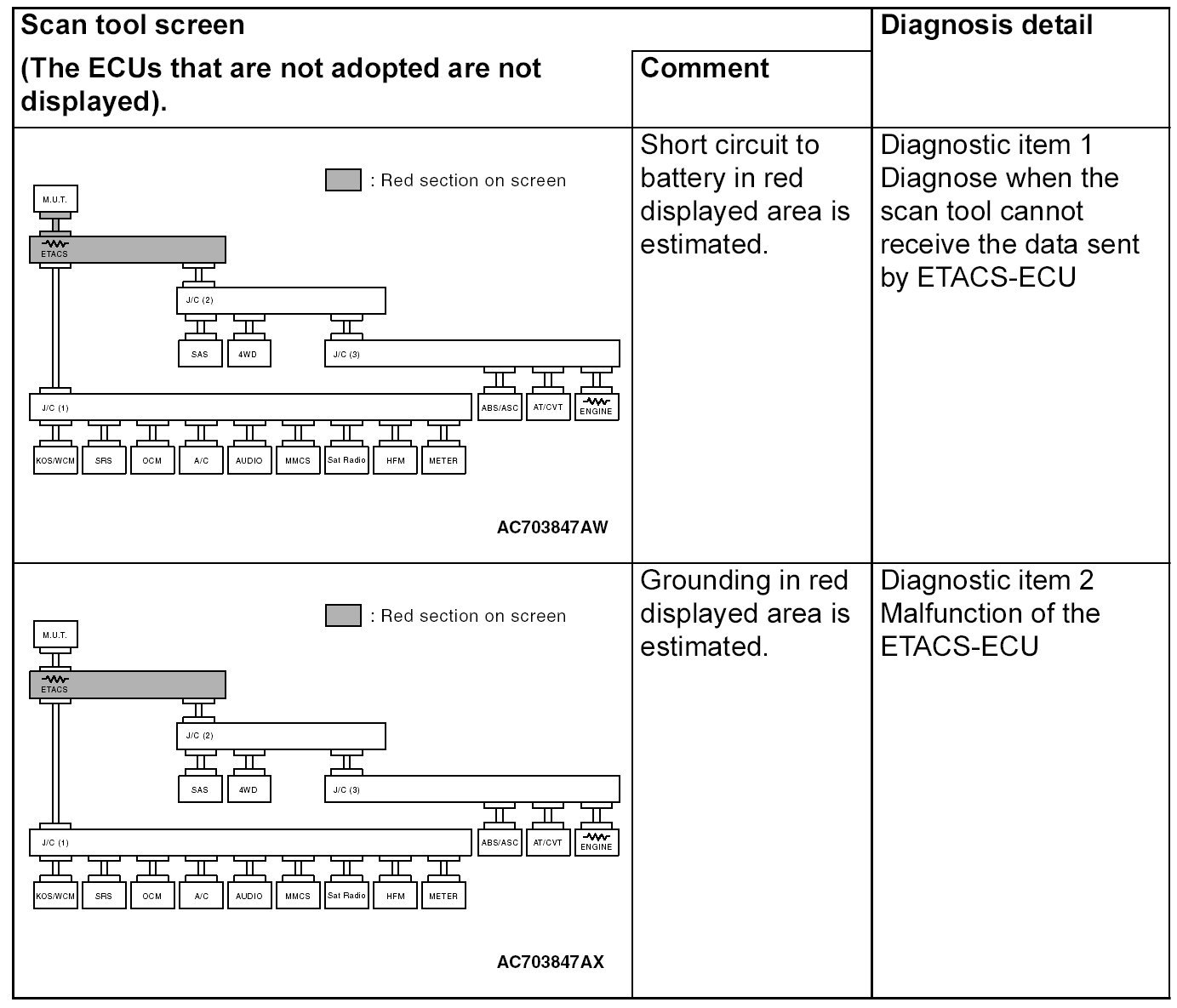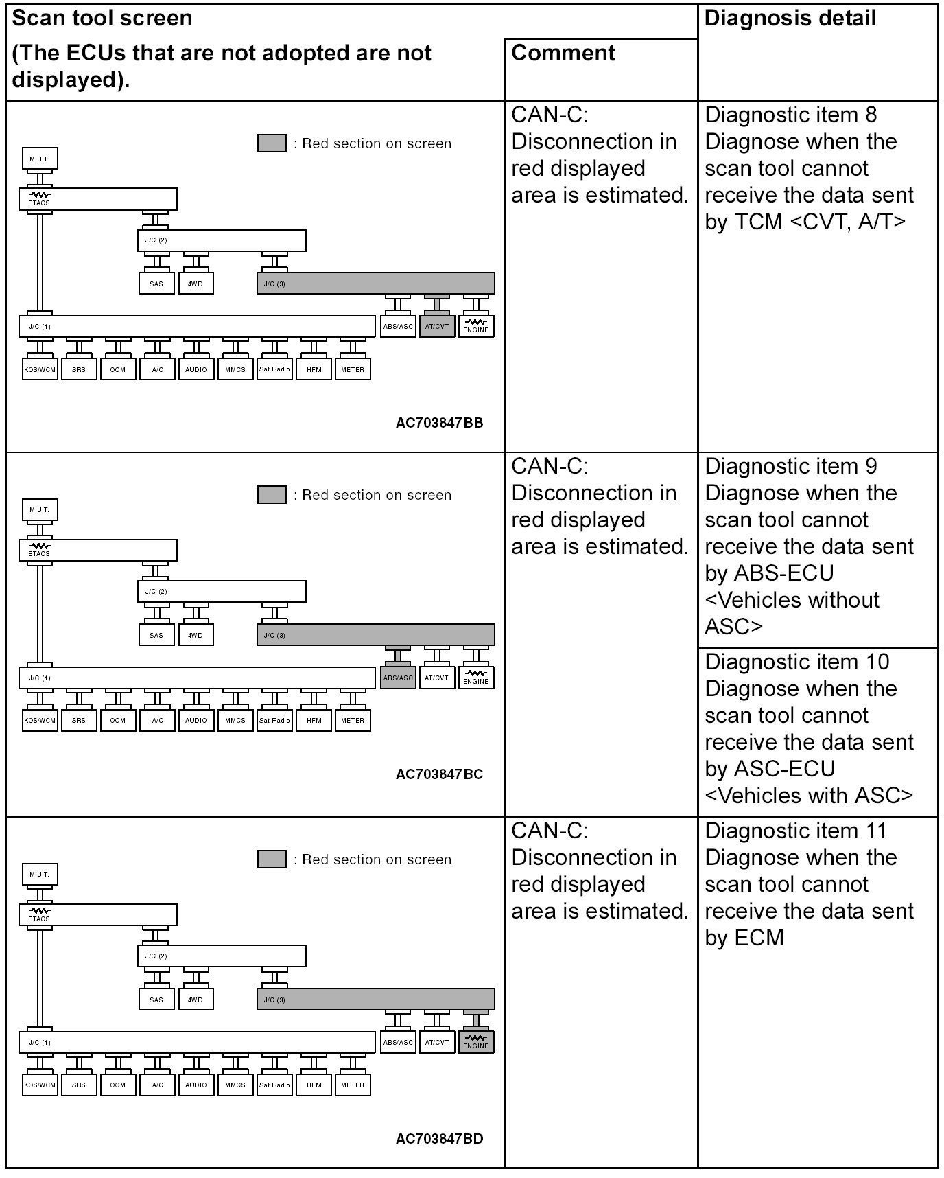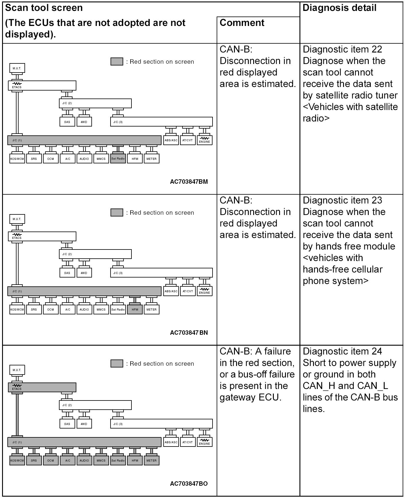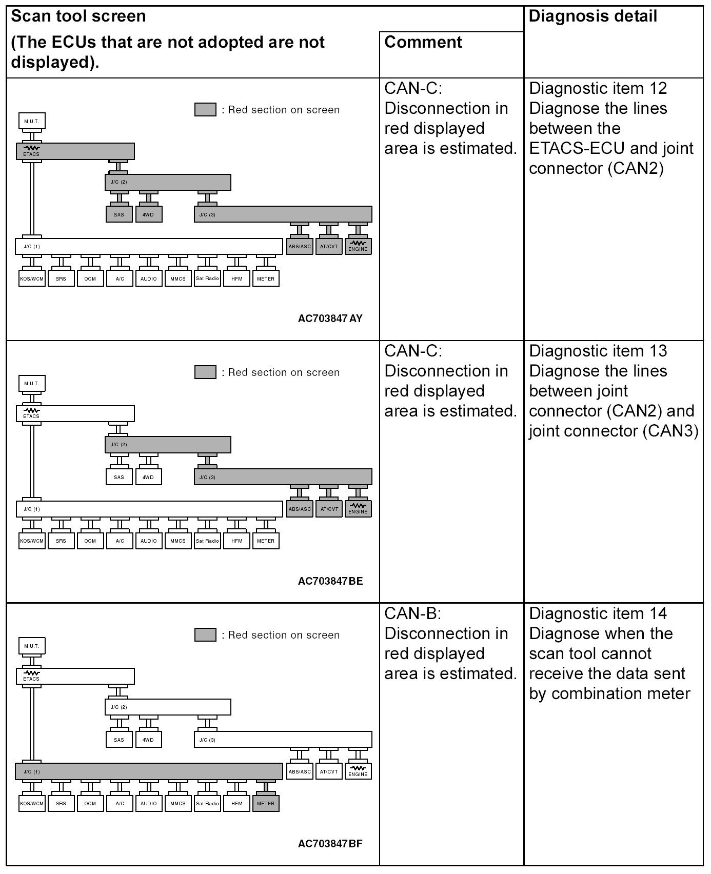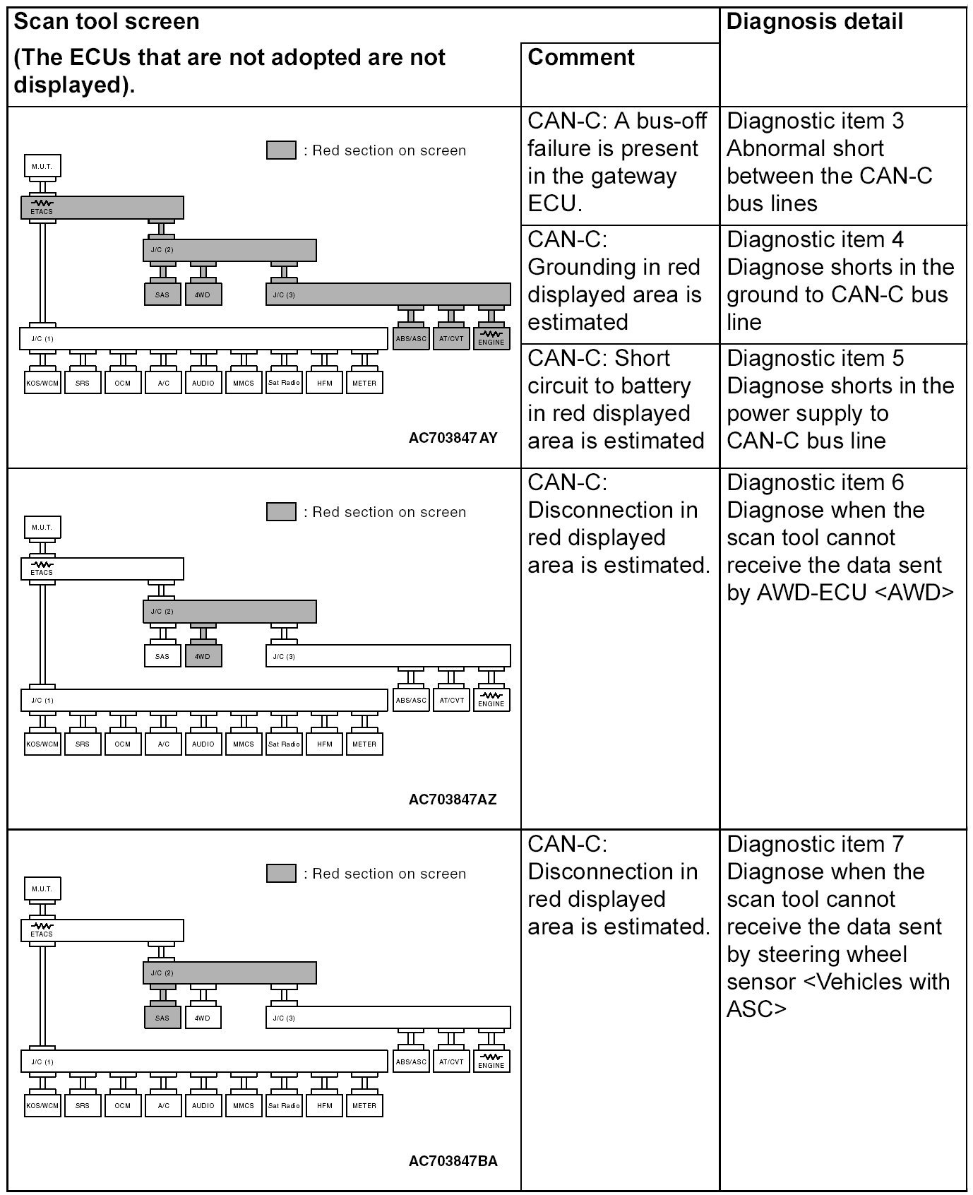 CAN Bus Diagnostics Table