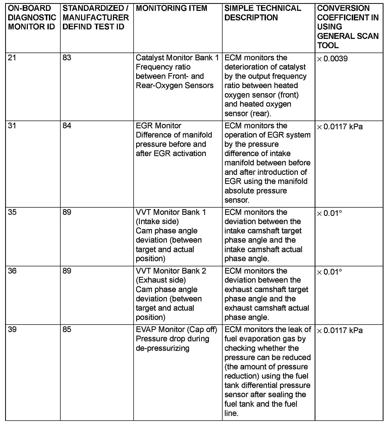 - When the monitored test results are erased by the battery disconnection and so on, the ECM outputs the values in hexadecimal of "0000" or "FFFF", otherwise it outputs abnormal values and so on. In case of this, the ECU outputs are handled as invalid-values. When the first monitor (Readiness Status) is completed after this, the ECM outputs the valid-values.