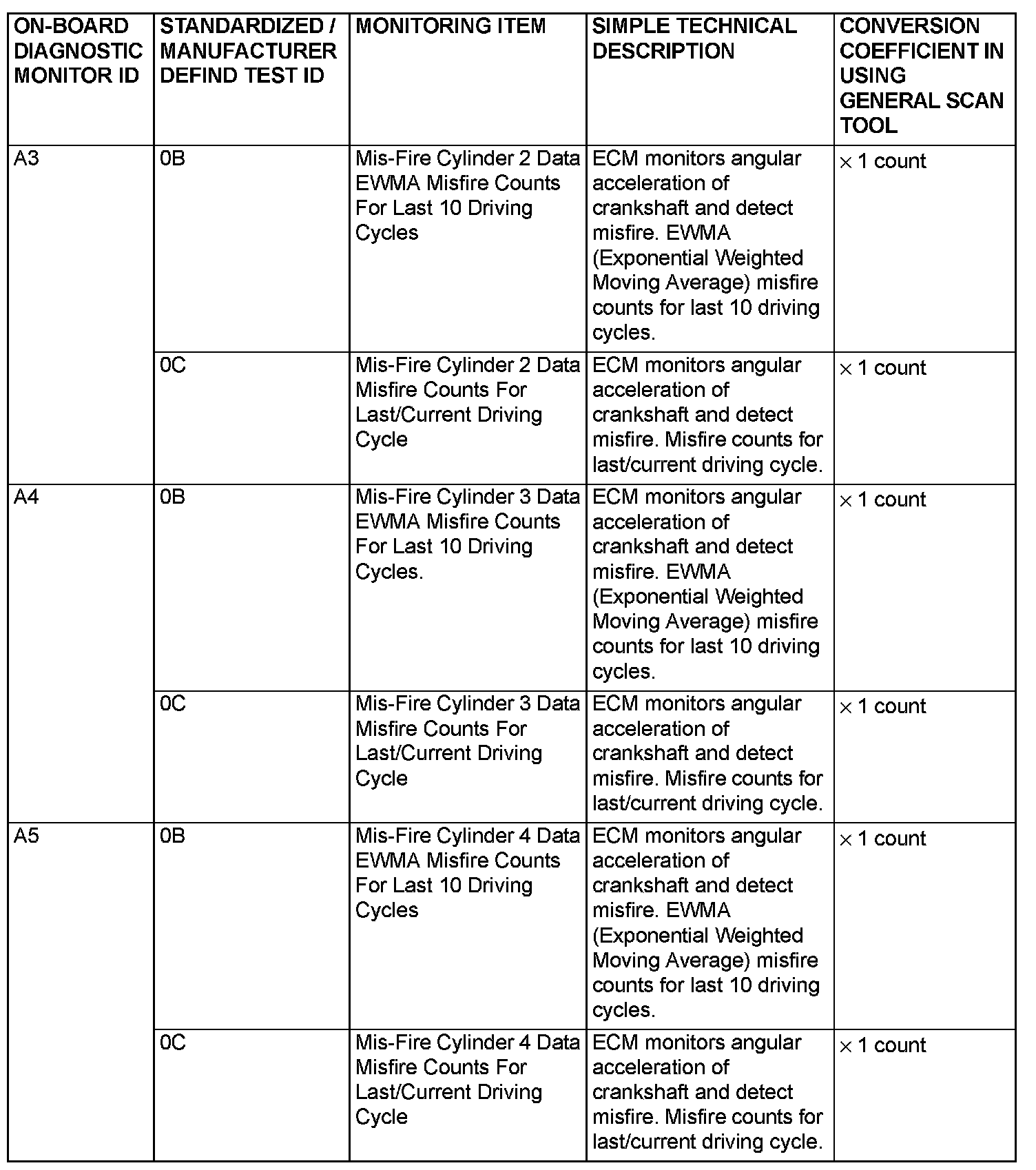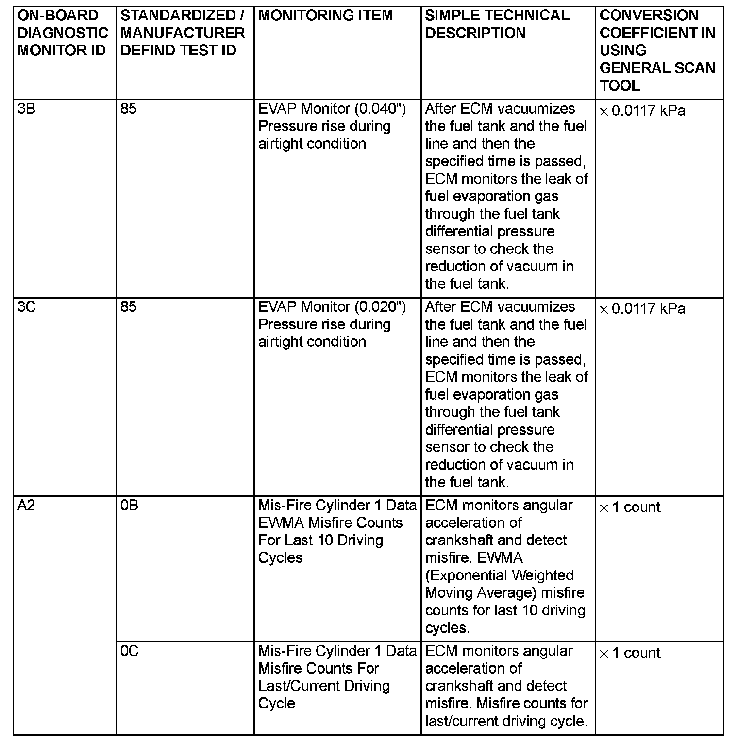 - When not finishing the monitor of the driving cycle for the request of On-Board Monitoring Test Request, the ECM outputs the stored latest monitor test result.