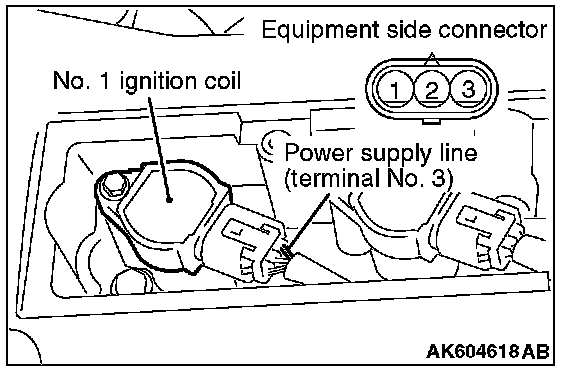 3. Set the timing light to the power supply line (terminal No. 3) of the ignition coil No. 1.