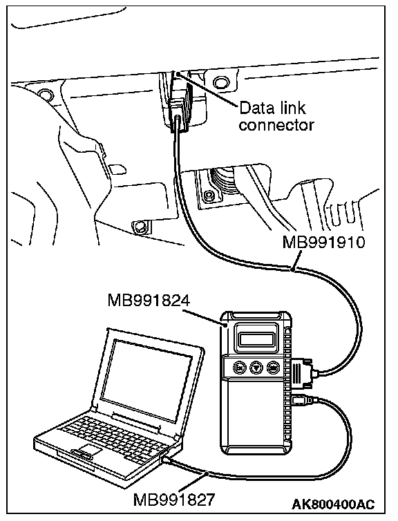 9. Using scan tool MB991958. make sure whether the diagnosis codes are stored due to the check, or not. Except the codes stored in Step 1, clear the codes all together if they are present. And then, carry out the troubleshooting about the codes recorded.