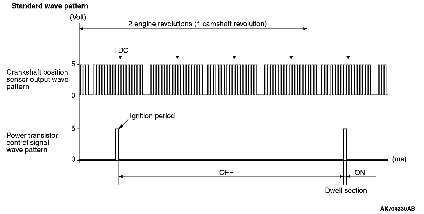 Point: The power transistor control signal (ignition timing) is advanced when the engine speed is increased.