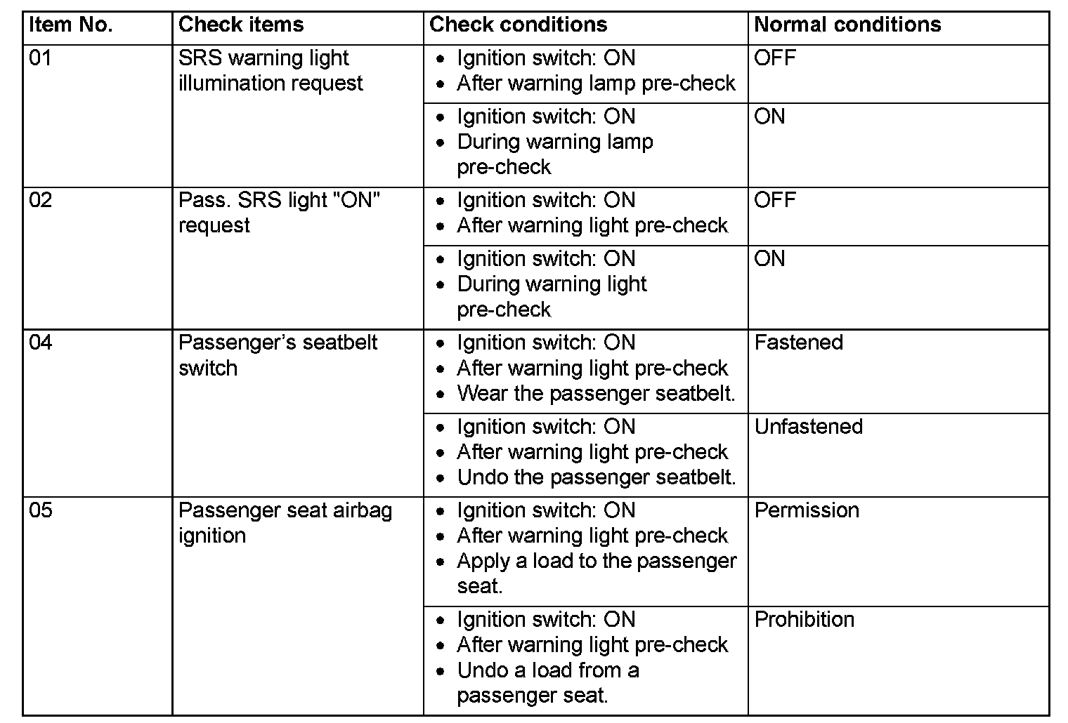 The following items can be read by the scan tool from the SRS-ECU input data.