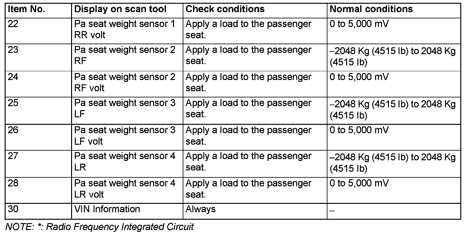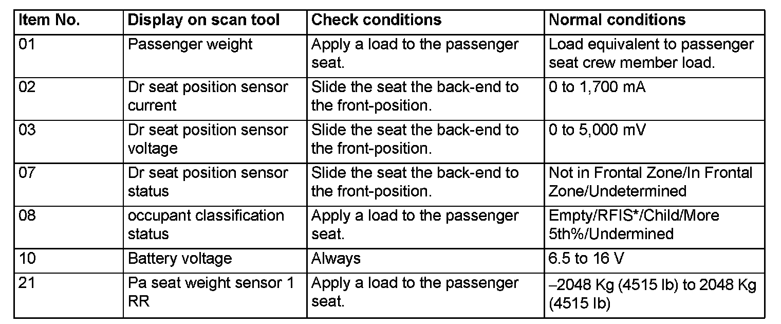 The following items can be read by the scan tool from the occupant classification-ECU input data.