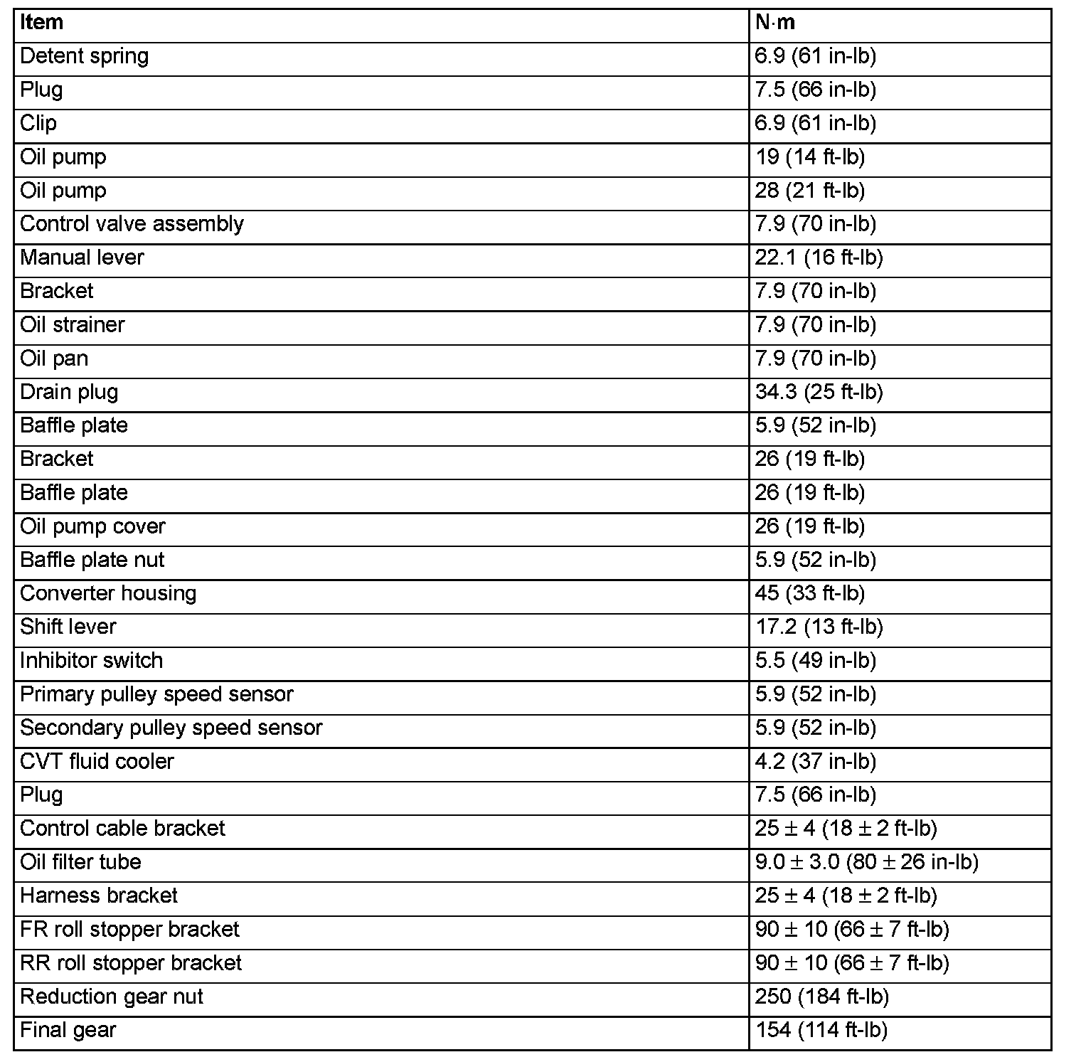 FASTENER TIGHTENING SPECIFICATIONS