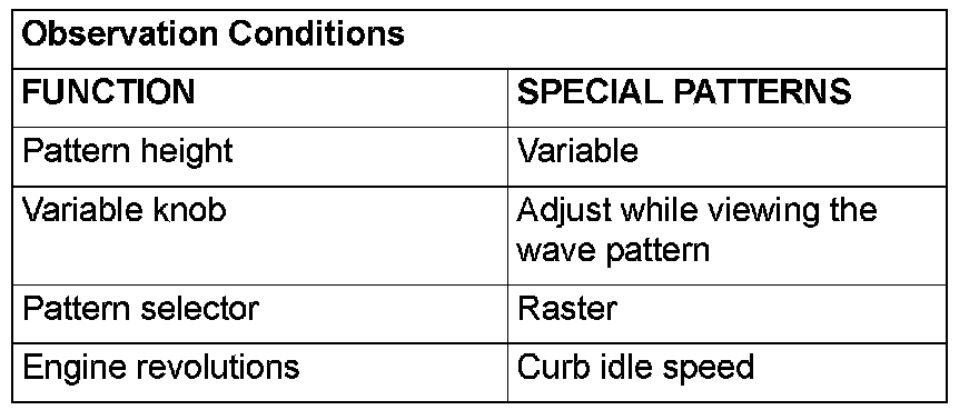 NOTE: The size of the waveform patterns can differ greatly, depending on the adjustment of the variable knob on the oscilloscope.
