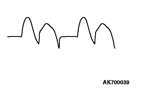 NOTE: Identification of abnormal waveforms is easier when there is a large output current (regulator is not operating). (Waveforms can be observed when the headlights are illuminated.)