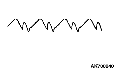 NOTE: The voltage waveform of the generator "B" terminal can undulate as shown at left. This waveform is produced when the regulator operates according to fluctuations in the generator load (current), and is normal for the generator If the ripple height is abnormally high (approximately 2 V or more during idling), the wires between the generator "B" terminal and the battery have broken due to fuse blowing, etc. The generator is usually operating properly.