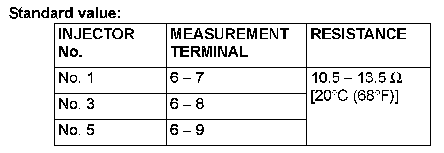 Standard value: 10.5 - 13.5 ohms [at 20 °C (68 °F)]