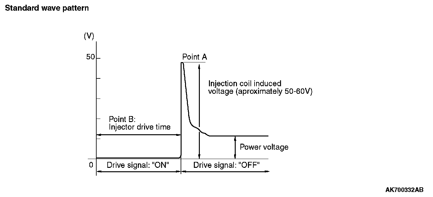 Point A: Presence or absence of induced electromotive force from the motor turning. (Refer to abnormal wave pattern.)