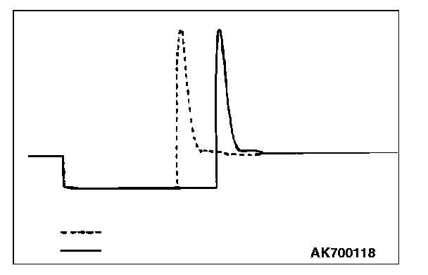 - Current is not supplied to the motor coil on the open circuit side. (Voltage does not drop to 0 volt.) Furthermore, the induced electromotive force wave pattern at the normal side is slightly different from the normal wave pattern.