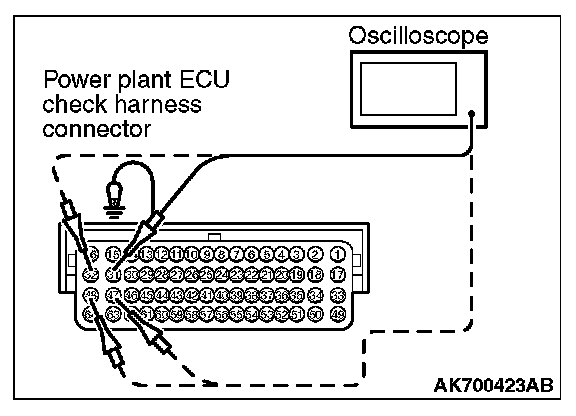 2. Connect the oscilloscope probe to check harness terminal No. 31, No. 32, No. 47 and No. 48.