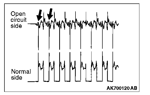 3. Connect the oscilloscope to check harness terminal No. 8. (Check the crankshaft position sensor signal wave pattern.)