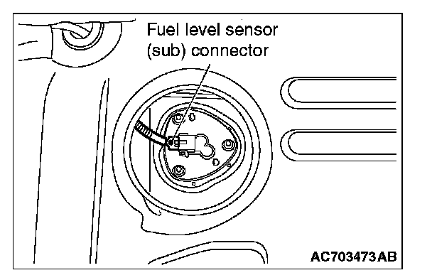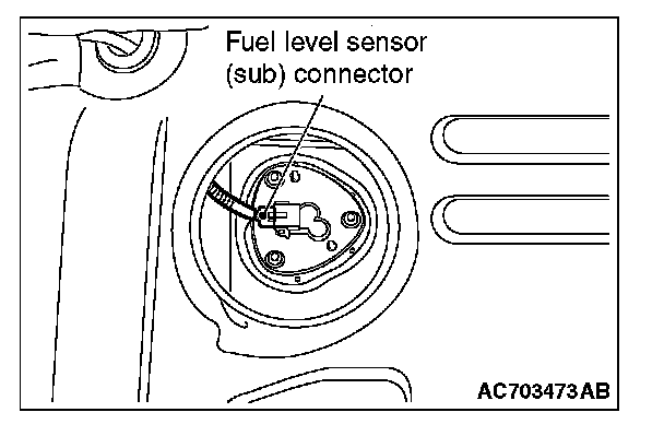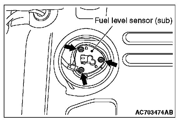CAUTION: Pay attention not to damage the fuel level sensor (sub) and the float of the fuel level sensor (sub) when withdrawing it from the service hole.