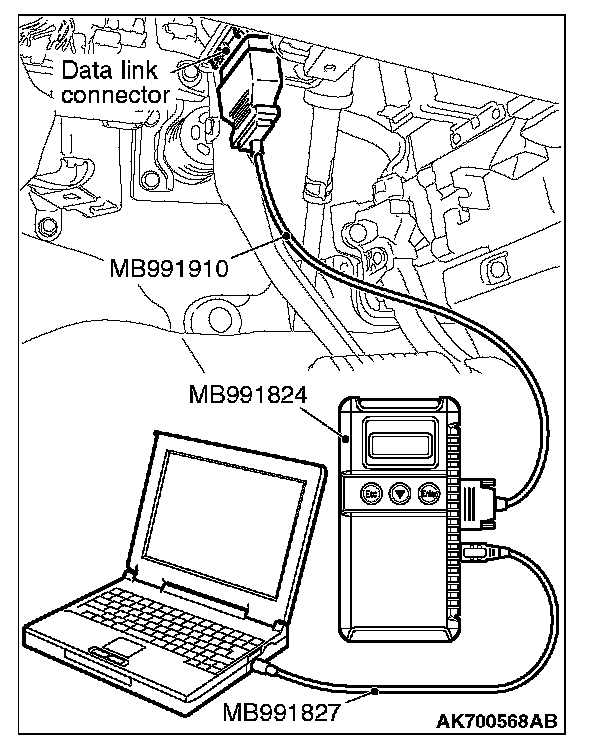 1. Connect scan tool MB991958 to the data link connector.