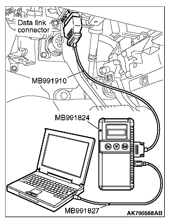 1. Connect scan tool MB991958 to the data link connector.