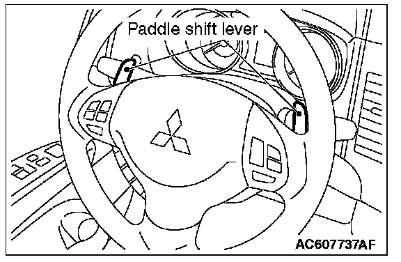 PADDLE SHIFT SWITCH CHECK1. After operating the paddle shift levers (+ side, - side) by pulling them to the rearward of the vehicle, check that the levers are returned to the original positions quickly when released. Also, check that no looseness, friction or abnormal sound occurs.