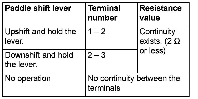 3. Check for continuity between the paddle shift switch connector terminals.