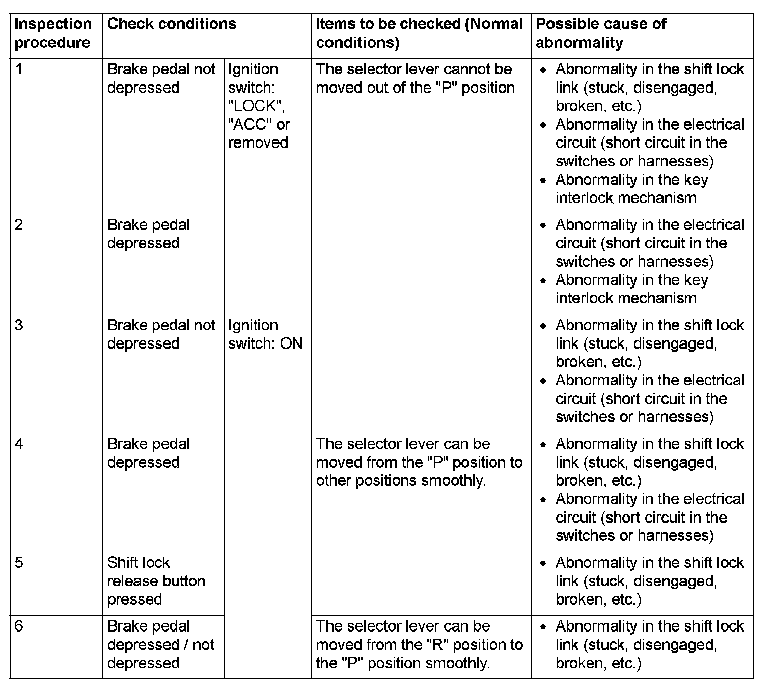 SHIFT LOCK MECHANISM CHECKSYSTEM CHECK