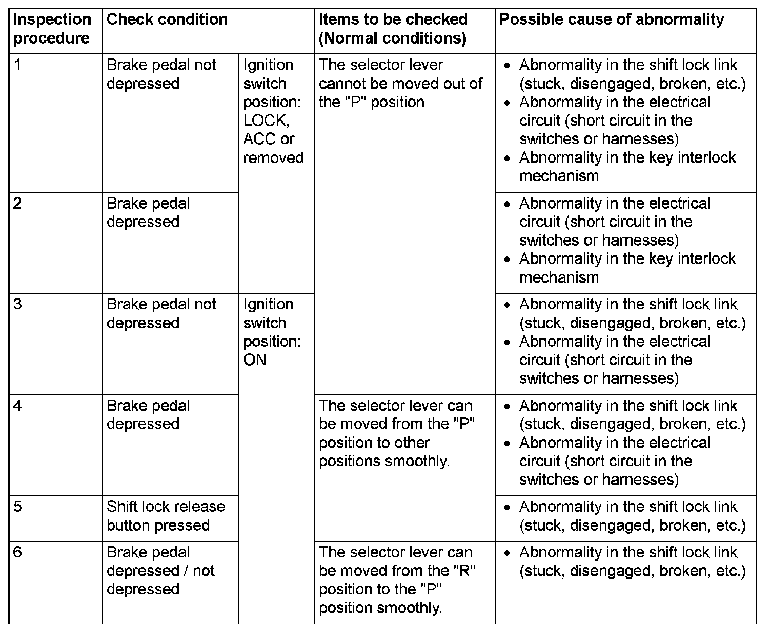 SHIFT LOCK MECHANISM CHECKSYSTEM CHECK