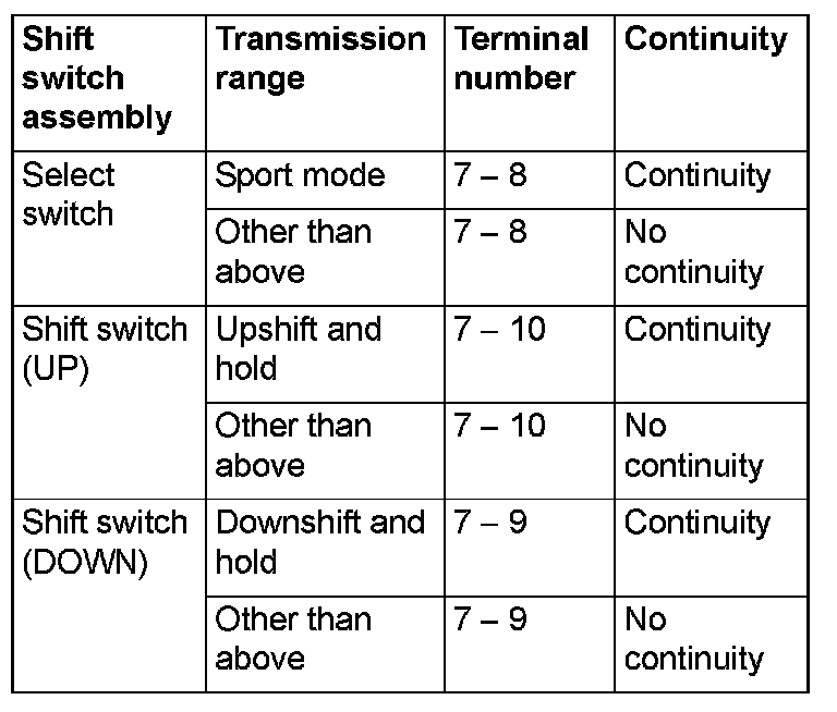 SHIFT SWITCH ASSEMBLY CONTINUITY CHECK