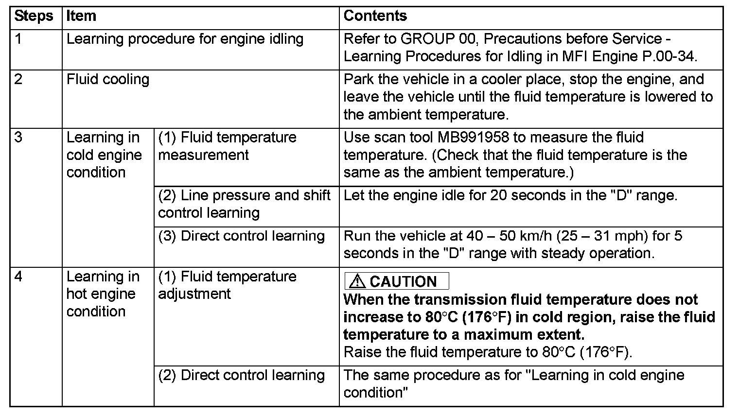 After initialization, the TCM does not have any learned value. This may degrade the shifting operation quality. The learning procedure is described below.
