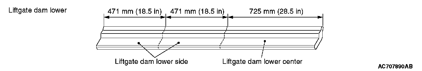 - Liftgate dam lower side (LH, RH) [471 mm (18.5 inches)]