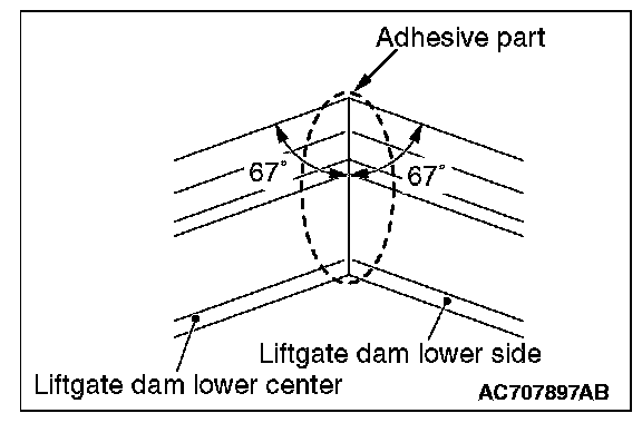 1. To the 67° -end of the liftgate dam lower center and the 67° -end of the liftgate dam lower side, apply the adhesive.