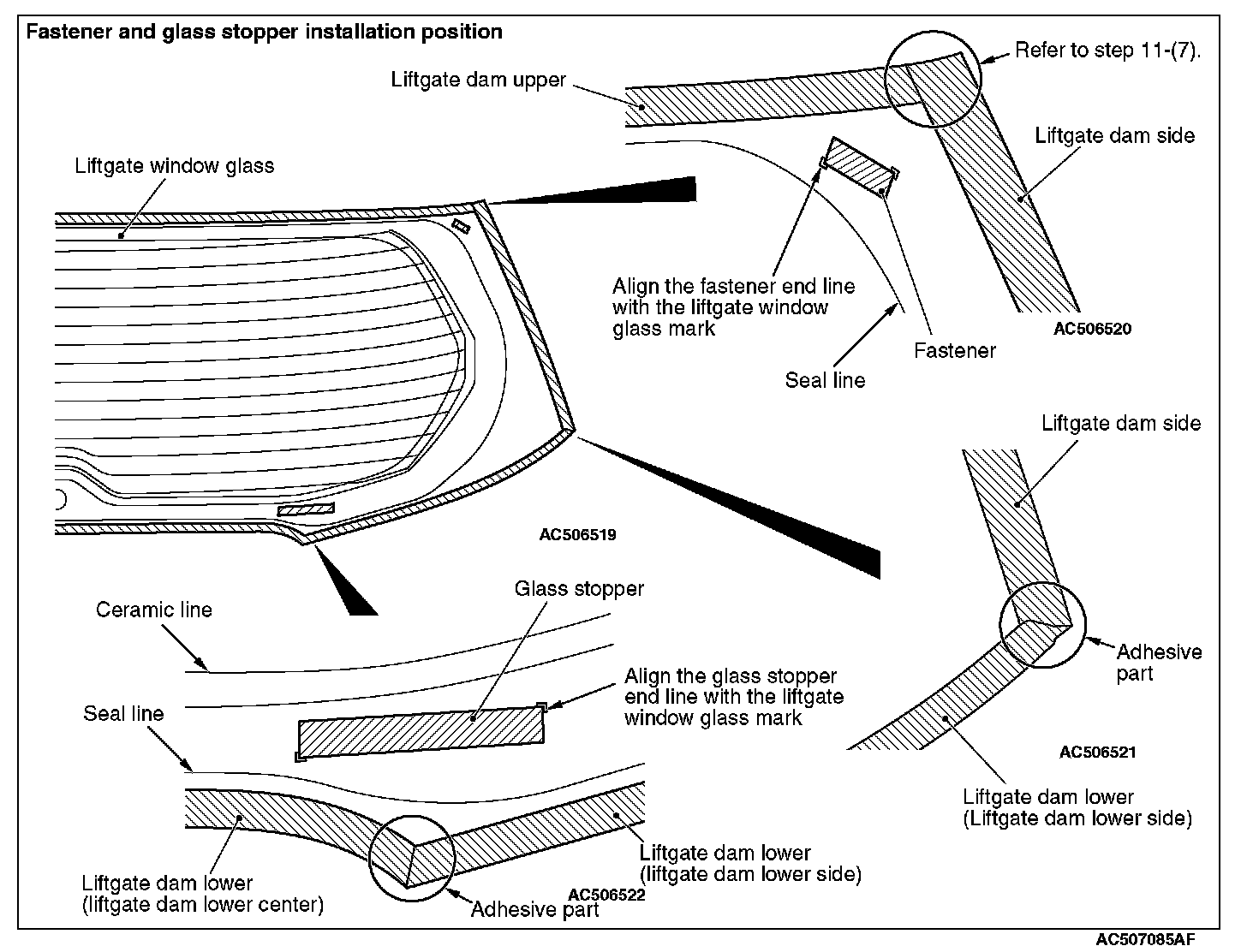 ]]A[[ LIFTGATE DAM LOWER/LIFTGATE DAM SIDE/LIFTGATE DAM UPPER/GLASS STOPPER/ FASTENER INSTALLATION