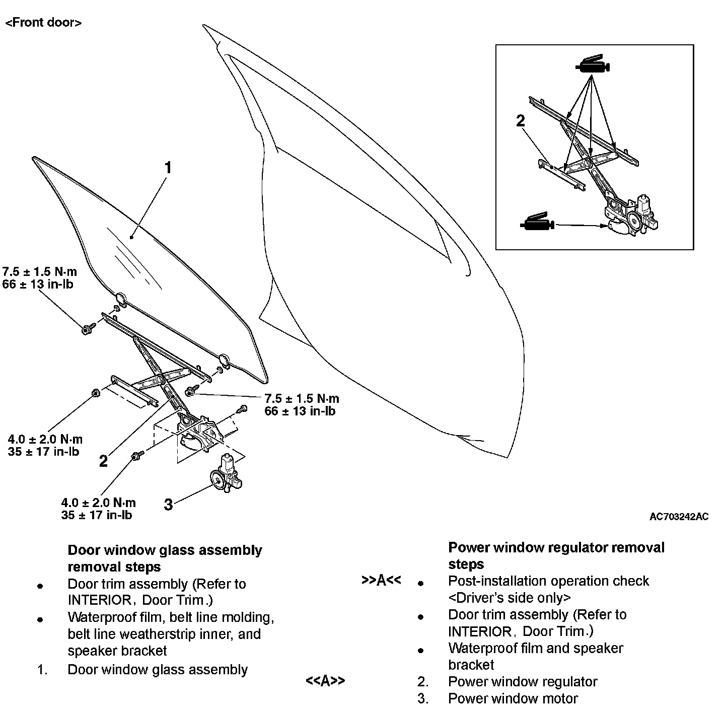 DOOR GLASS AND REGULATORREMOVAL AND INSTALLATION