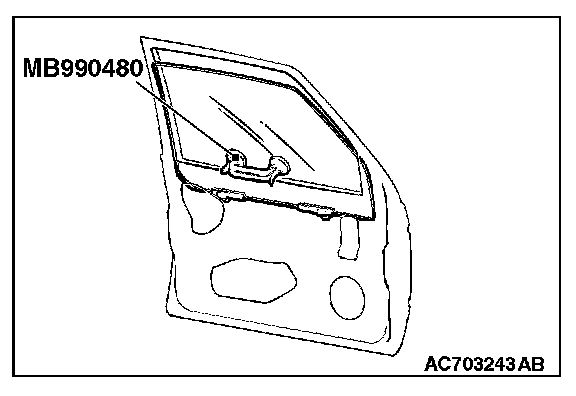 CAUTION: If tinting film is adhered to the door window glass, attach special tool MB990480 to the outside of the glass to prevent the film from peeling off.