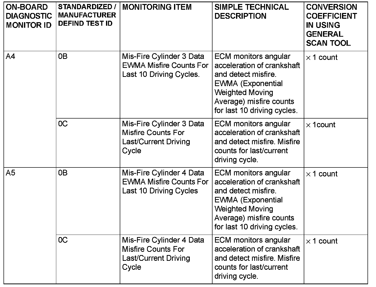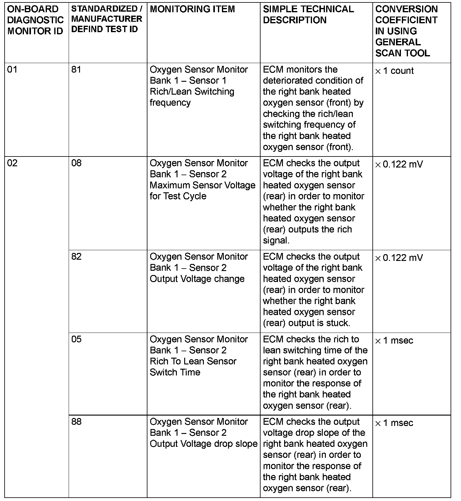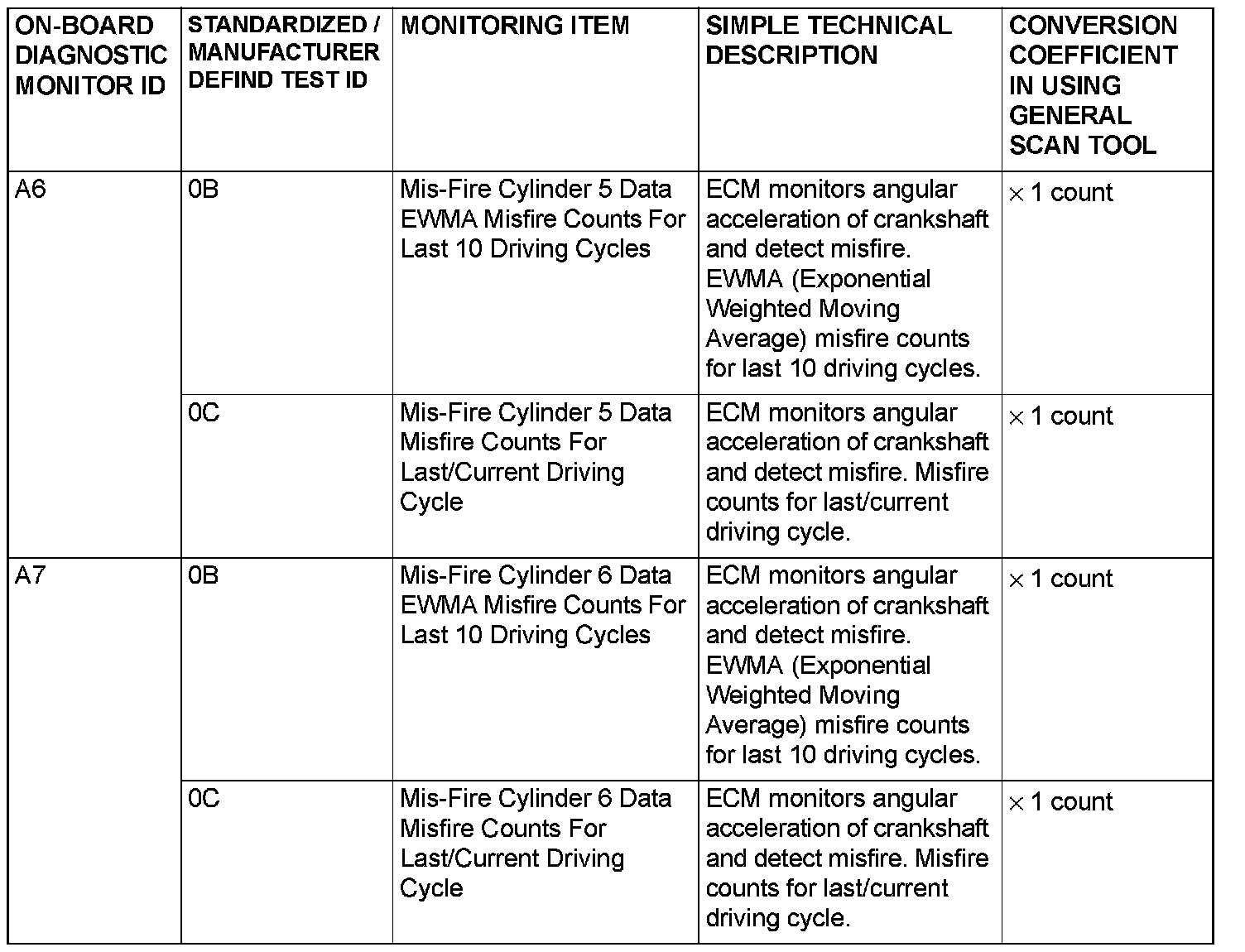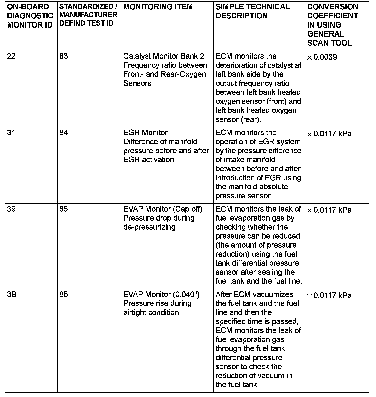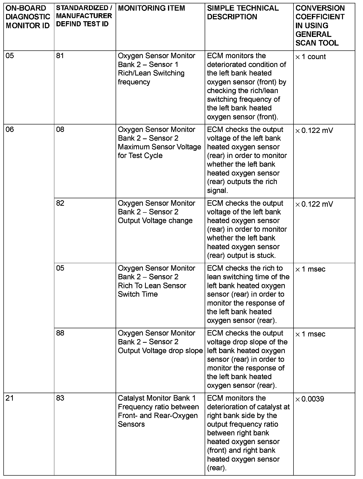 MODE 6 REFERENCE TABLEThe engine control module (ECM) monitors the condition of emission control system.