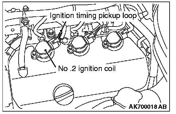 3. Set the timing light to the power supply line (terminal No. 1) of the ignition coil No. 2.