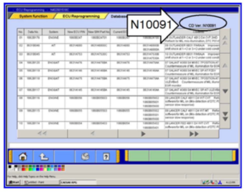 2. If the database version is less than N10091, you must transfer the new reprogramming data from the Reflash Update CD 10/10 to the MUT-III hard drive as follows: