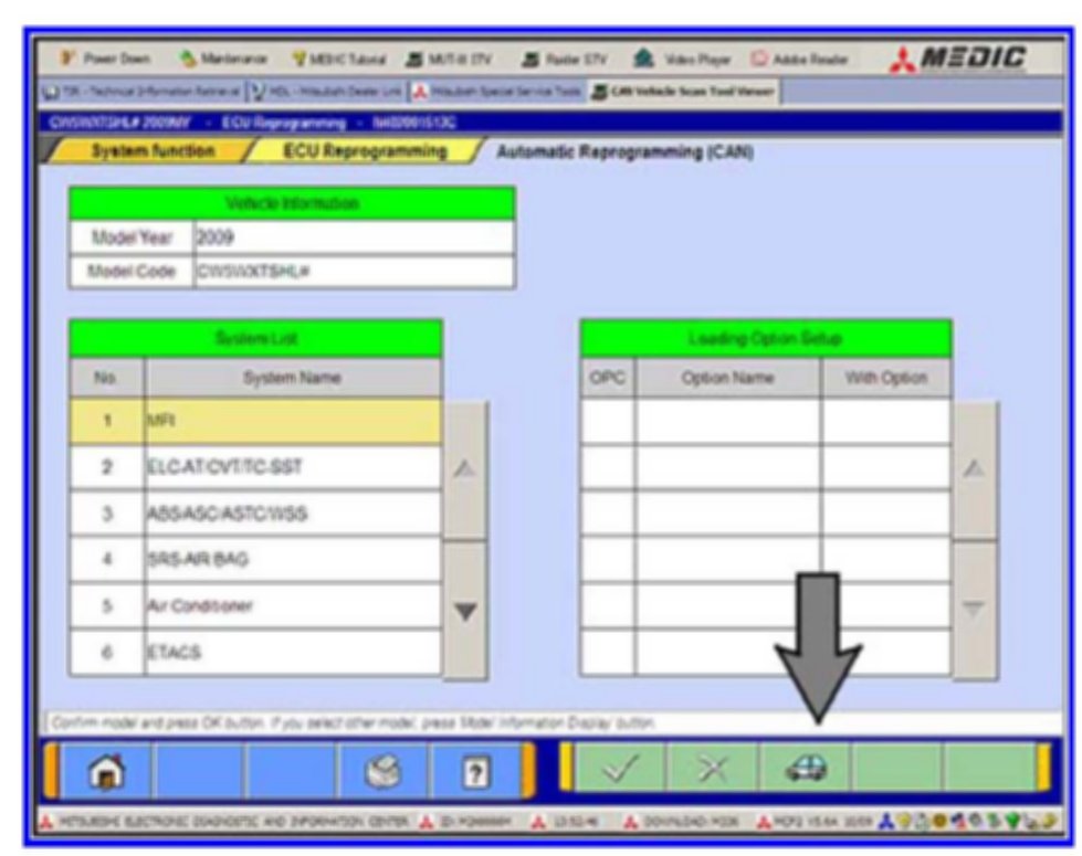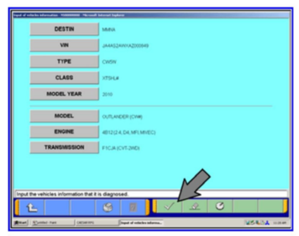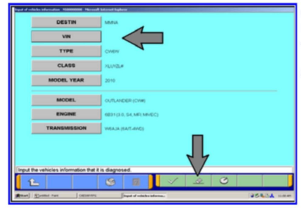 h. Click on the icon in the lower RH corner of the screen to have the MUT-III automatically read the VIN. If a message appears saying that the VIN cannot be input automatically manually type the 17 digit VIN into the VIN field at the top of the page.
