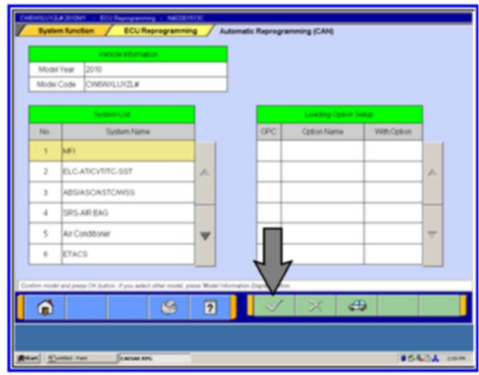 q. Click the check mark and you will be returned to the "ECU Reprogramming" page.