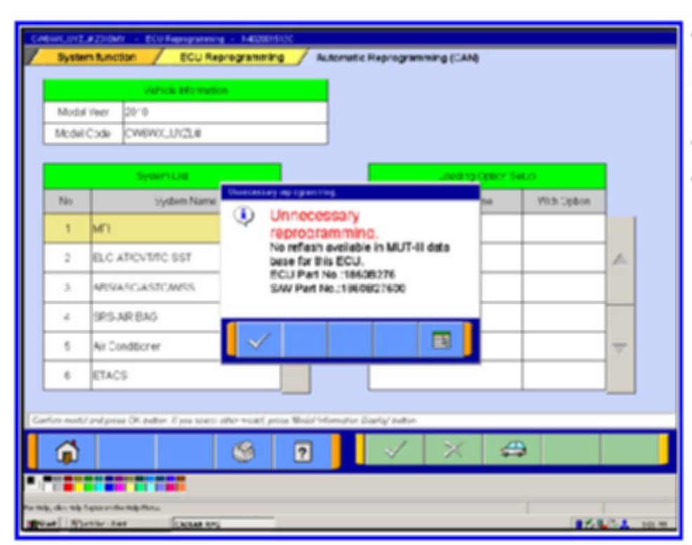If an "Unnecessary Reprogramming" message does not appear, continue with step I.