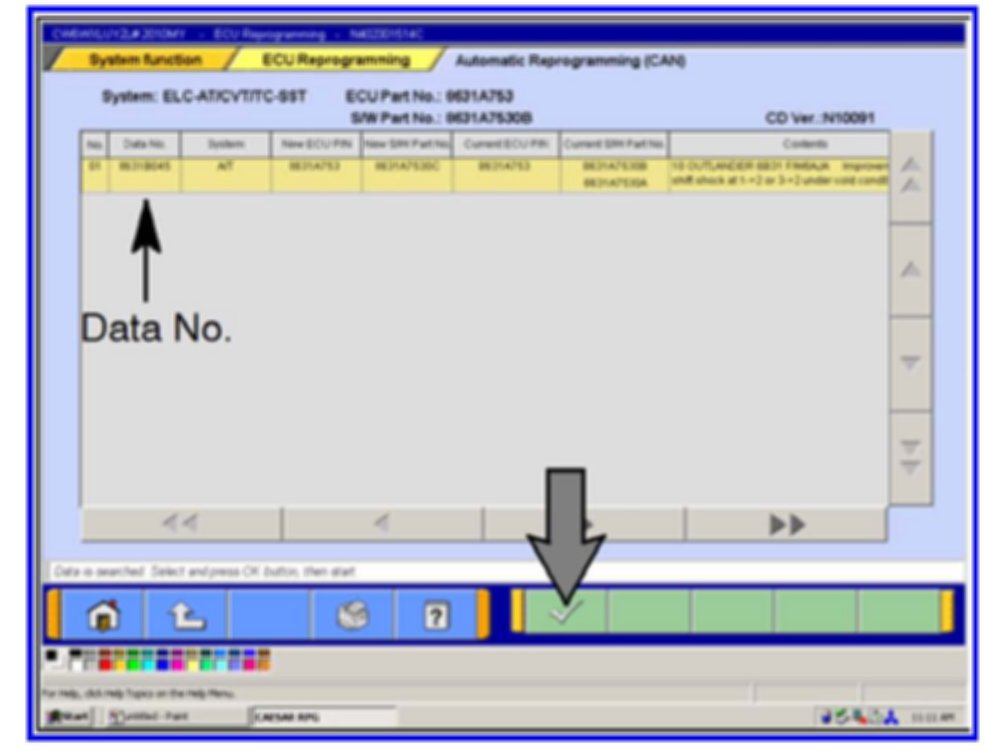 If more than one row is displayed in the table, refer to the ECM Reprogramming Chart to select the proper Data No. for this procedure and select the appropriate row.