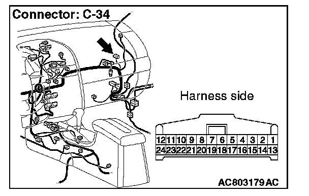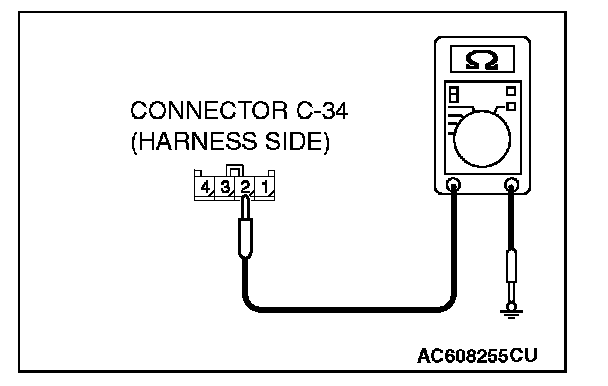 STEP 6. Check the wiring harness between microphone switch connector C-34 (terminal 2) and ground.
