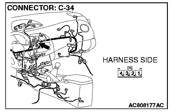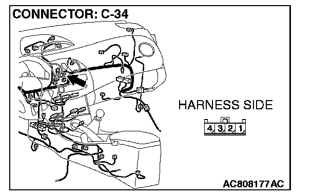 1. Disconnect hands free microphone switch connector C-34, and measure at the wiring harness side.