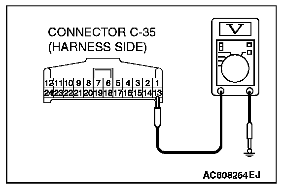 STEP 10. Check the wiring harness between hands free module connector C-35 (terminal 13) and battery.
