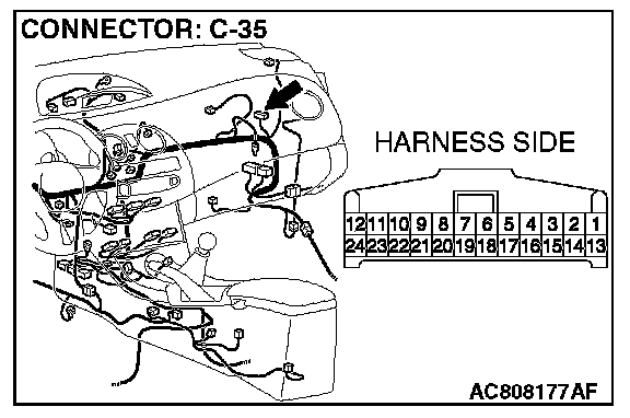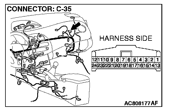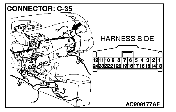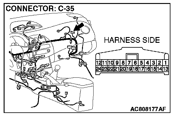 1. Disconnect hands free module connector C-35, and measure at the wiring harness side.