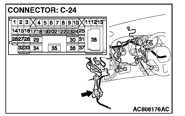 NOTE: Also check intermediate connector C-24 for loose, corroded, or damaged terminals, or terminals pushed back in the connector. If intermediate connector C-24 is damaged, repair or replace the connector.