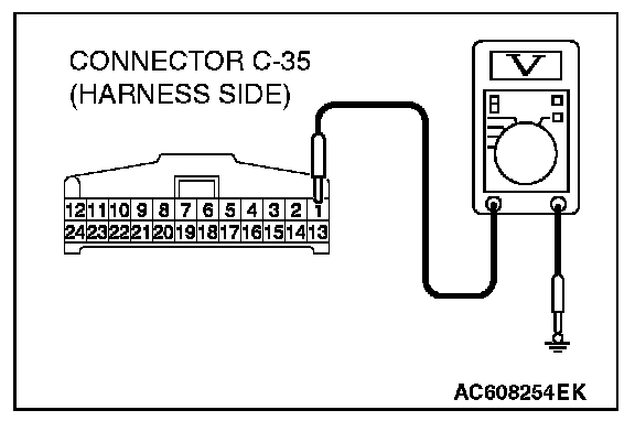 STEP 12. Check the wiring harness between hands free module connector C-35 (terminal 1) and ignition switch (ACC).