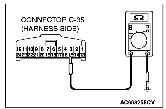 STEP 14. Check the wiring harness between hands free module connector C-35 (terminal 15) and ground.