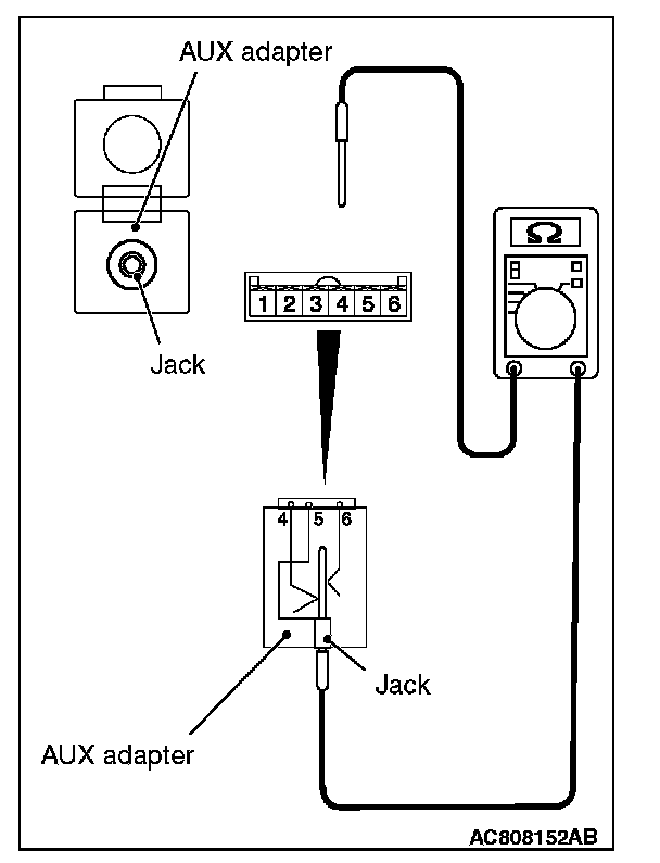 Check that continuity exists between the terminal and the jack of AUX adapter.