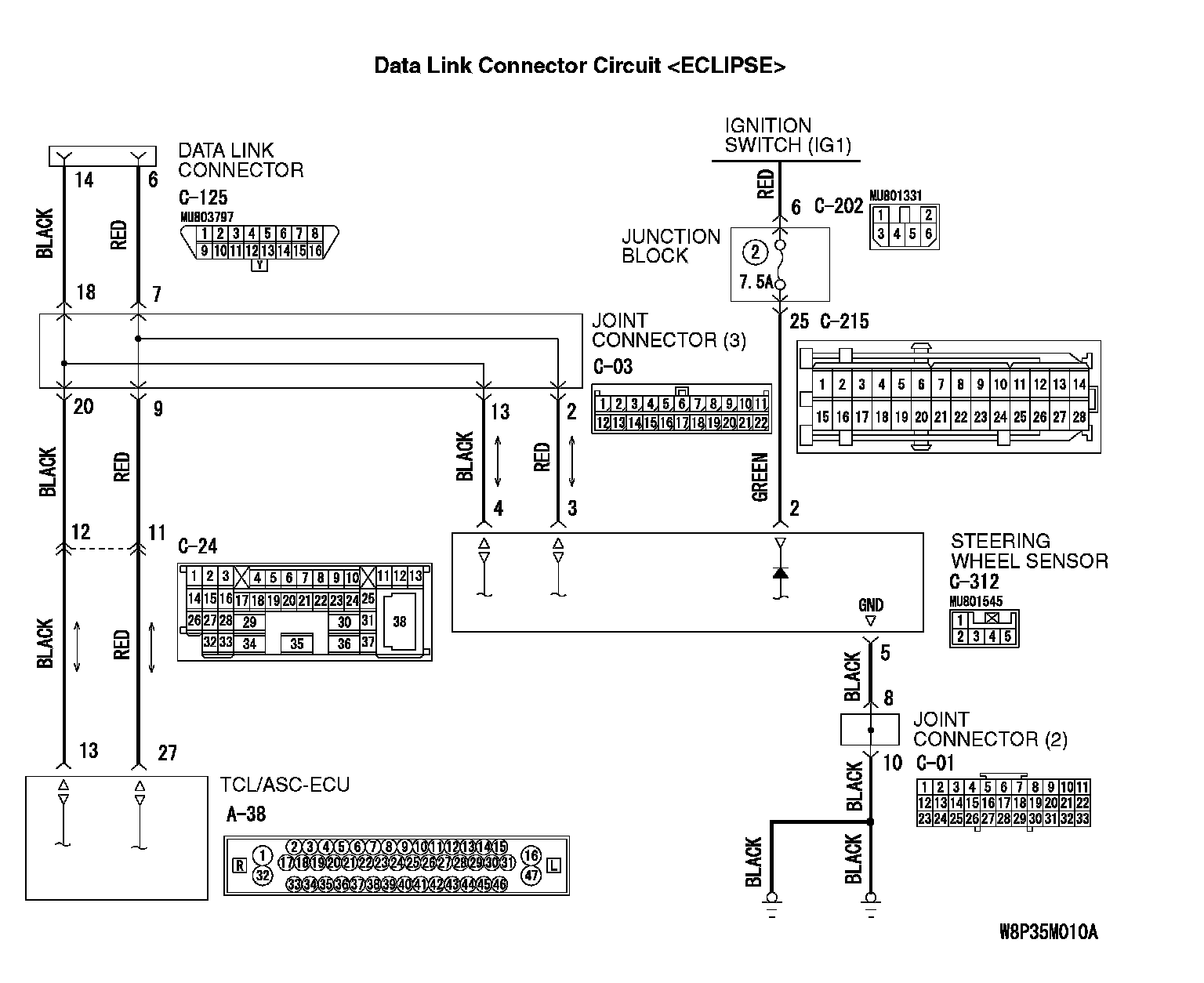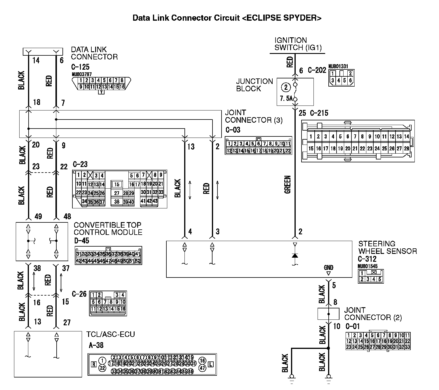 If the scan tool (M.U.T.-III Sub Assembly) can not communicate with the steering wheel sensor, the CAN bus lines may be defective. If the ASC system does not work, the steering wheel sensor or its power supply circuit may be defective.