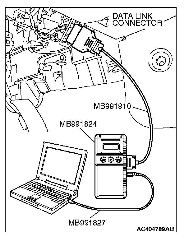 1) Connect scan tool MB991958 to the data link connector.